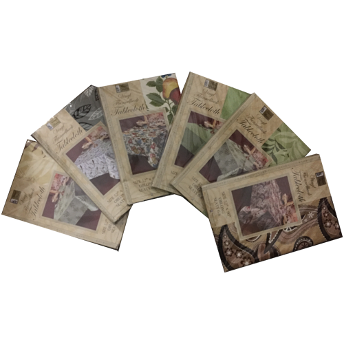 This Vinyl Flannelback oblong tablecloth Comes in assorted colors and design based on availability.
