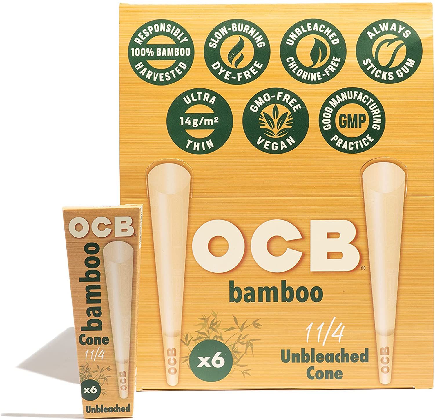 Minimum quantity for "OCB Bamboo Pre-Rolled Cones 1 1/4 Size 32PK" is 1.